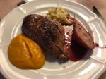 Magret de pato de Son Sitges con peras al vino y puré de boniato