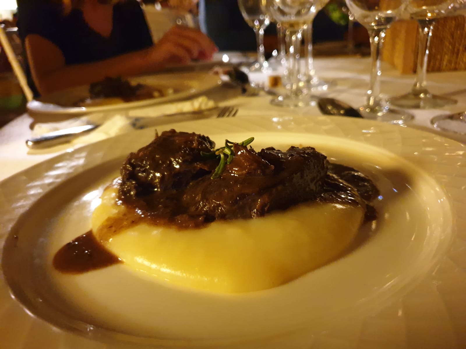 Acompañamos las carrilleras con este delicioso puré como base y decorando con una rama de romero