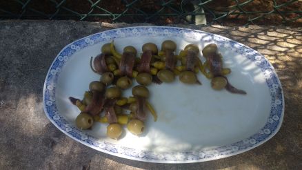 - Pinchar en un palillo Piparras (ver que tengan etiqueta EUSKOLABEL para asegurarse que no son guindillas picantes, sino piparras vascas que tienen el mismo aspecto pero que se recogen antes de tiempo y como resultado no pican)
