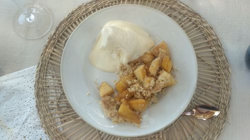 4º. Colocar la manzana en la base del molde y luego el crumble. Hornear 25 min aprox a 180º.
