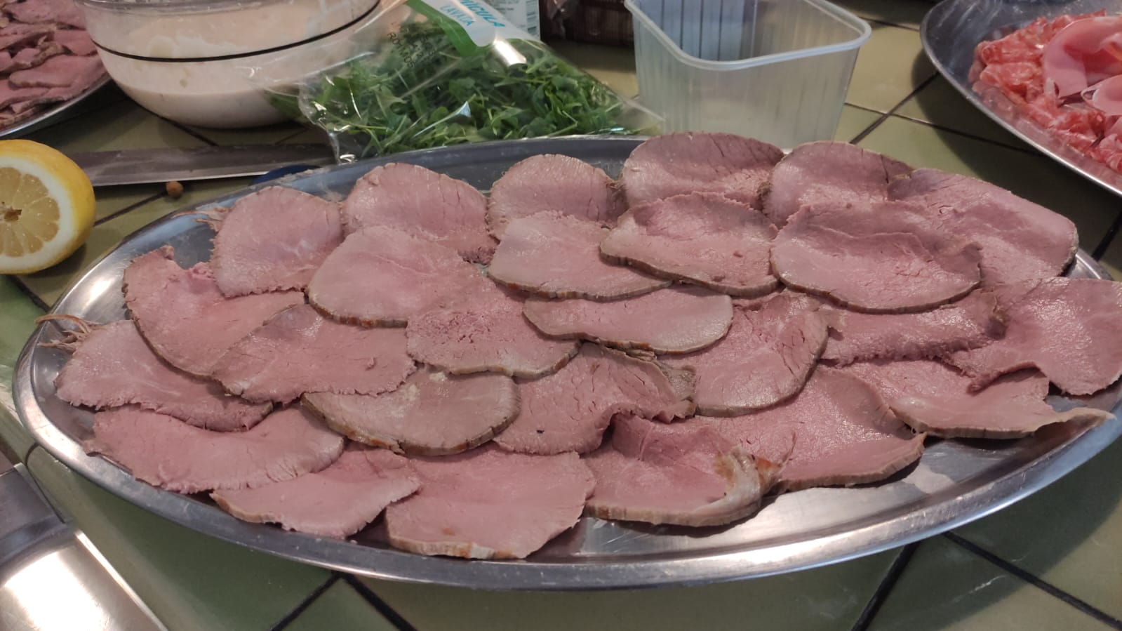 La clave del plato es cómo cocinar la carne. Si bien, muchas recetas simplemente hierven la carne, en esta ocasión optamos por hacerla al horno. Así, salpimentamos el redondo y lo ponemos en una fuente sobre una base de caldo de verduras (suave, zanahoria, cebolla y una rama de perejil) sin que toque el caldo, es decir que este ligeramente elevado. La intención es que quede jugoso, sin llegar a hervirse. Lo tenemos a unos 120 º durante 1 horas y 45 minutos. Retiramos y enfriamos en nevera. El interior de la carne debe tener un punto rosado.
