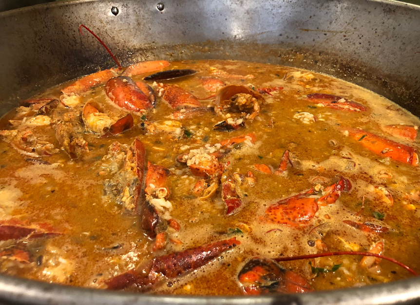 Para un Galliner elegante no se olviden el ARROZ CON BOGAVANTE. Rima que bien podría ser un plagio del gran poeta galliner Jaime Company, y su escribano presi- pontano, que por ser acusado de tramposo hoy lo haremos CALDOSO.