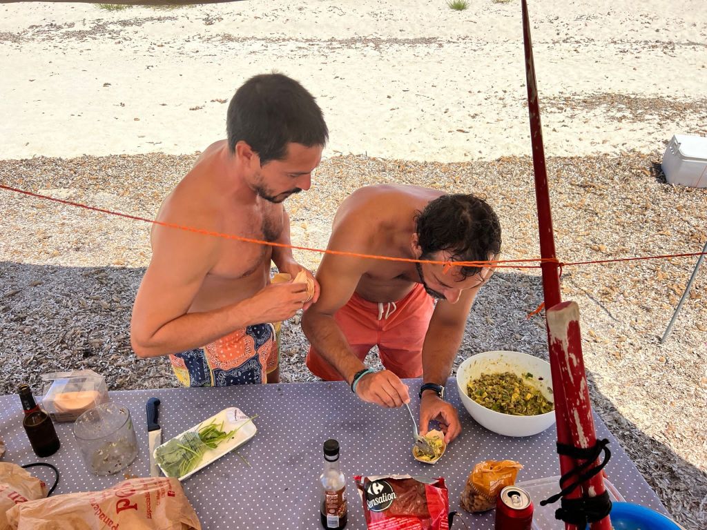 Para esta jornada especial se eligió una ubicación única, la playa de Es Carbó, en la colonia de Sant Jordi, donde se realizó un desembarco con varias lanchas de apoyo y se montó un buen tinglado con mesas, neveras, toldo, windsurf y diversiones varias…se hizo una pequeña conquista de una parcelita de playa