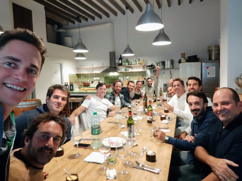 - En la olla/graixonera,ponemos 50 g de aceite de oliva y calentamos y sofreimos los ajos ligeramente golpeados con la mano o con la hoja del cuchillo y las cabezas de los carabineros. Al cabo de unos minutos añadimos 30 g del vino.