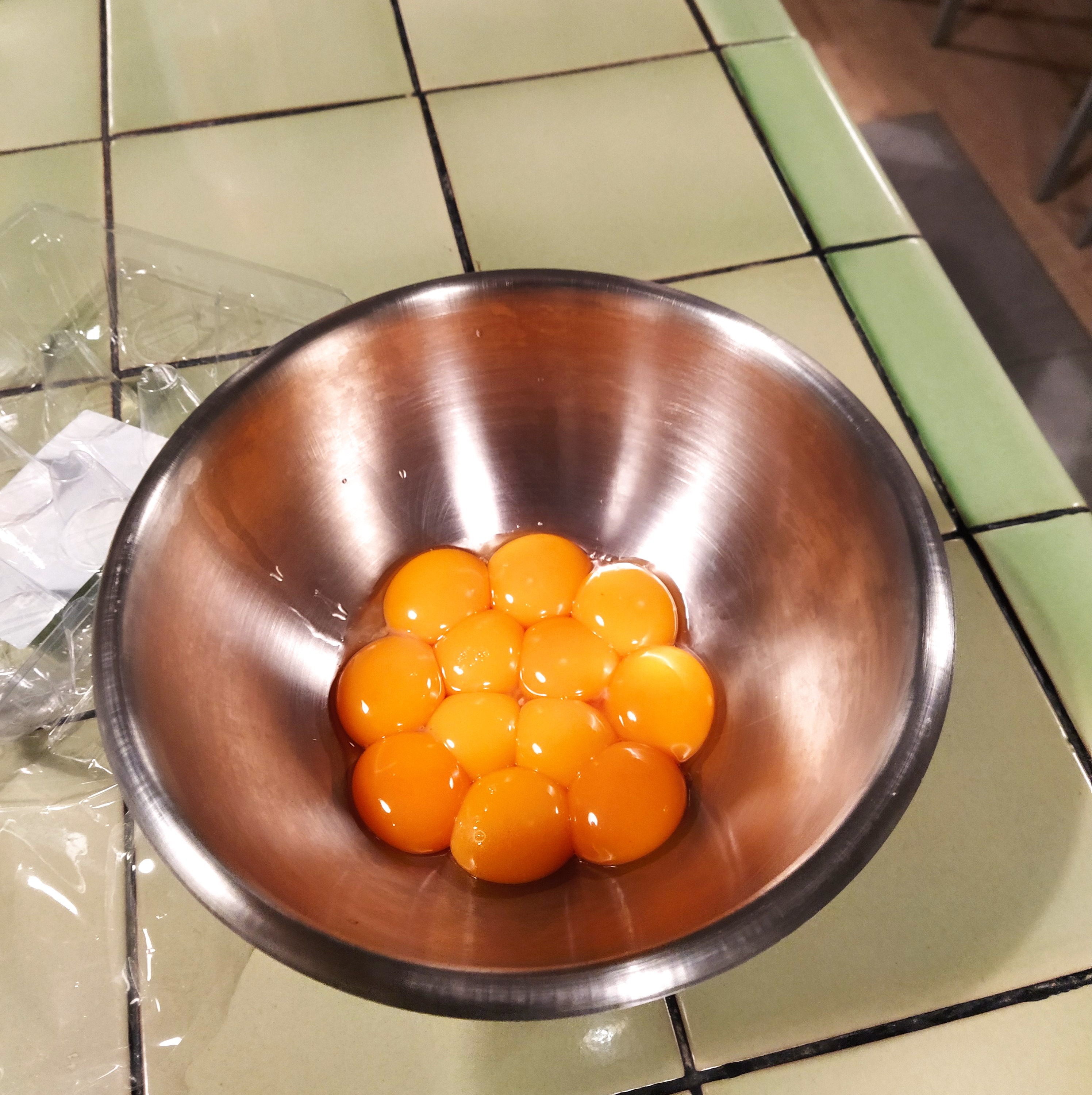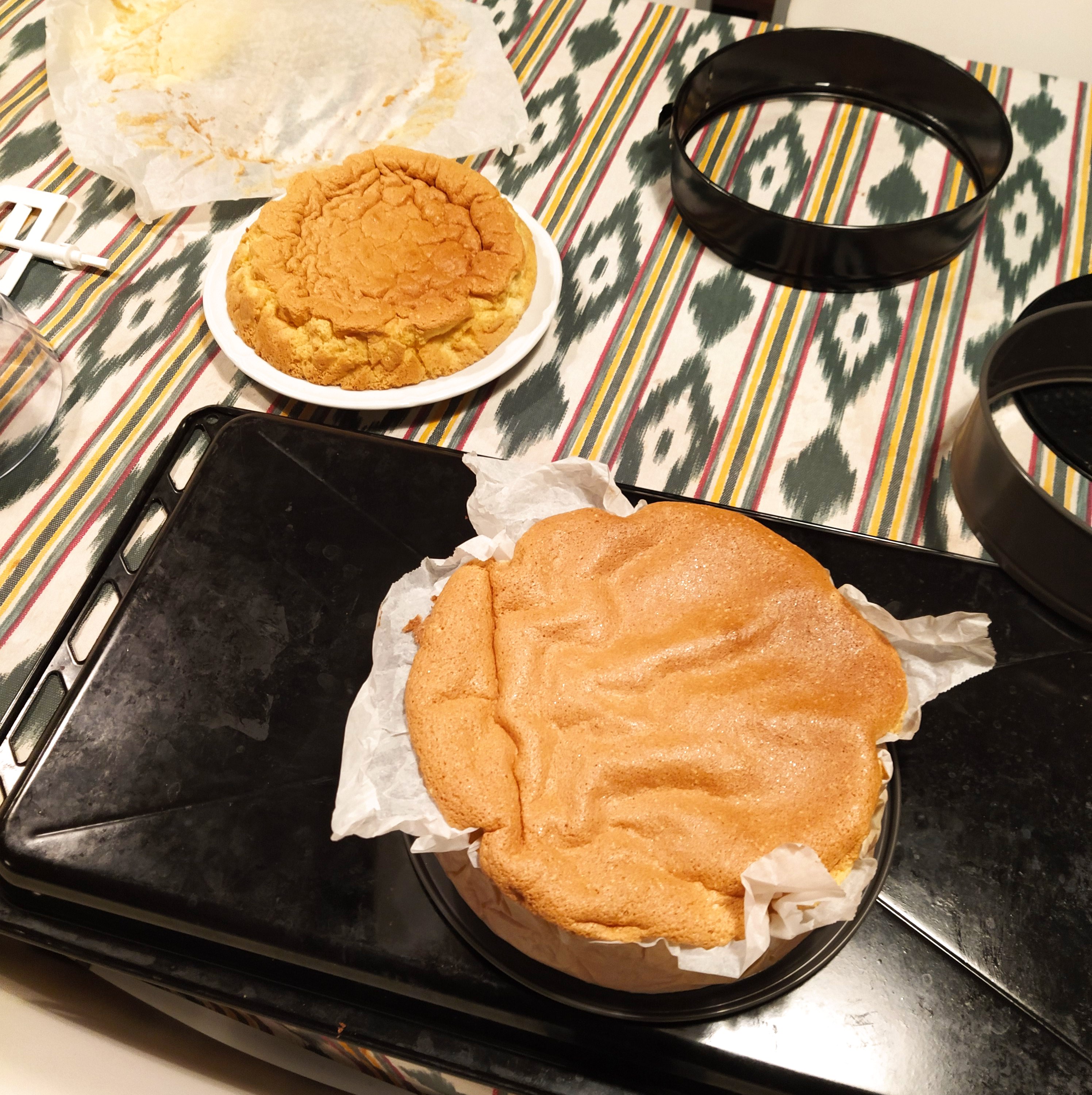 Por otra parte mezclamos las yemas con el azúcar y luego la harina. Para posteriormente integrar en el bol de las claras usando una espátula con movimientos envolventes para no perder volumen.