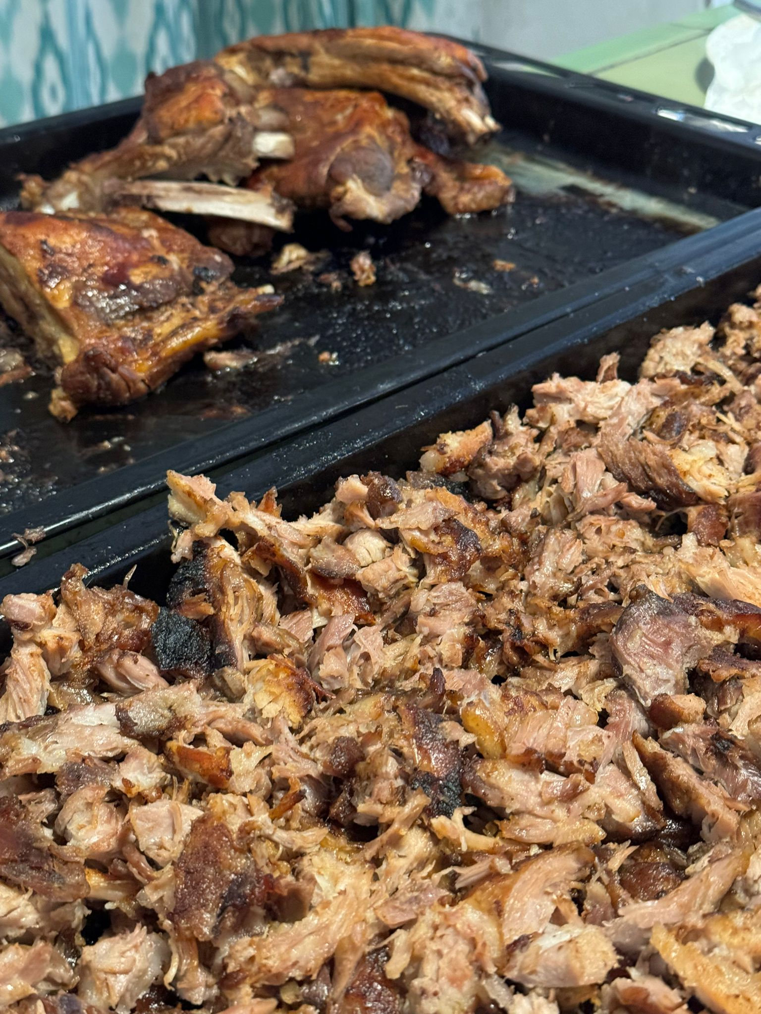 - Una vez listas, desmenuza las costillas utilizando dos tenedores o tus manos, separando la carne del hueso y obteniendo tiras jugosas.