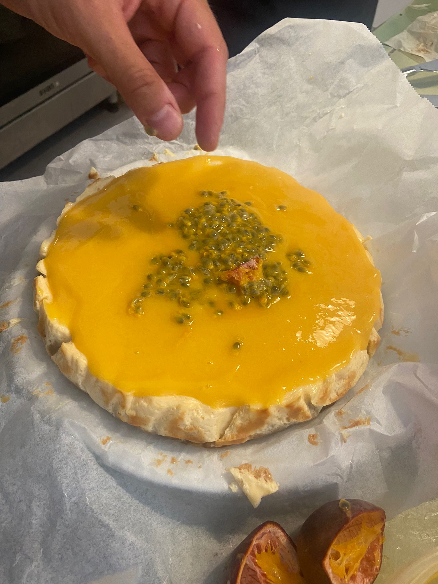 - Desmolda la tarta con cuidado y retira el papel de horno.