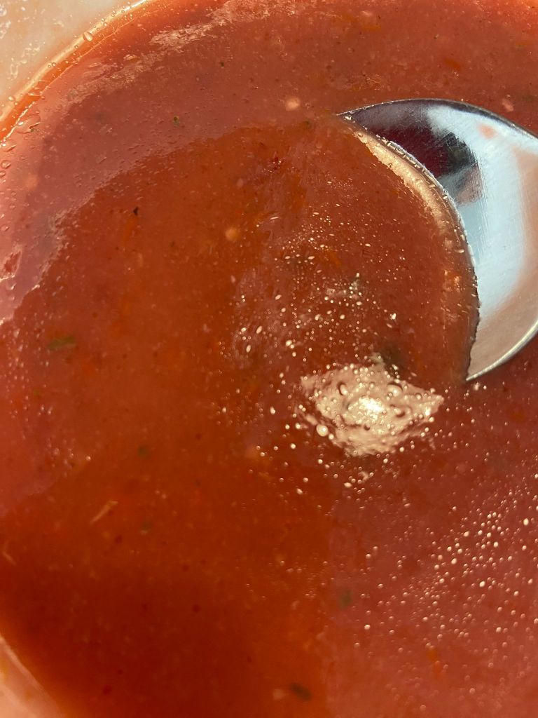 - Pasa la mezcla por un colador fino o un chino para eliminar las pieles y semillas, obteniendo así una textura suave.