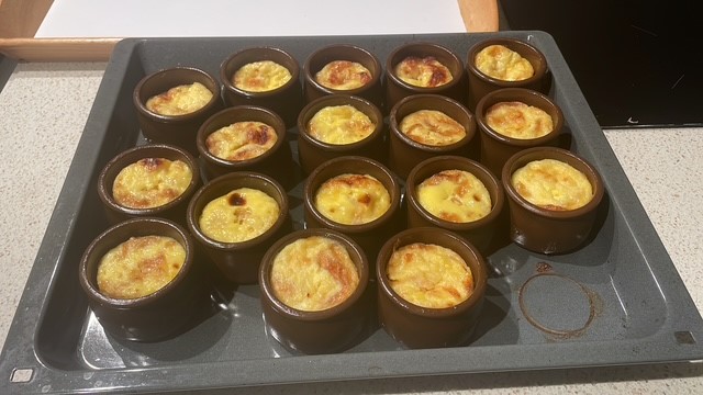 Horno precalentado a 180º. Cocer al baño María durante 53 minutos y tapado con papel de aluminio que retiramos los últimos 10 minutos.