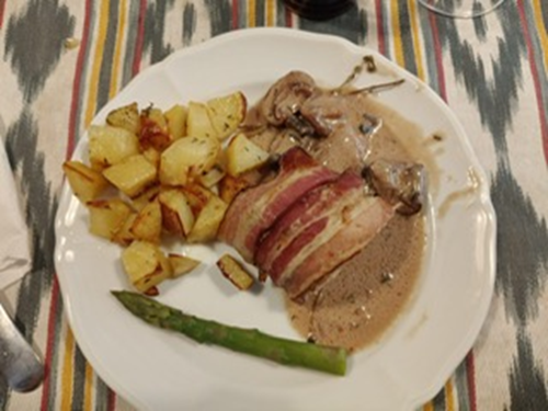 Después, cubrimos el solomillo con el majado y cubrimos con lonchas de bacon.