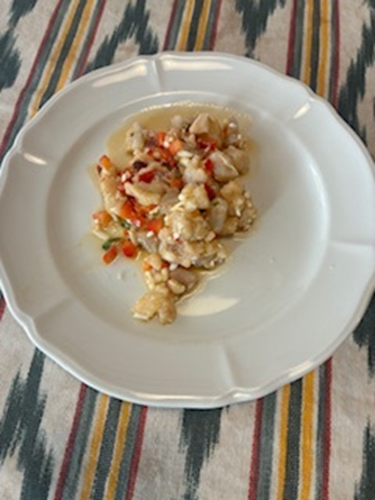 - La clave de nuestro salpicón está en la vinagreta. Preparamos una vinagreta clásica , a base de cebolla, huevo duro y pimiento rojo.
