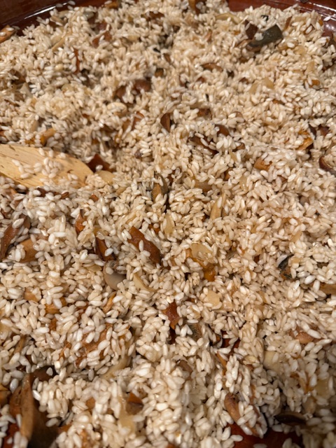 Para un punto extra de sabor y textura, servimos el risoƩo de setas con lascas de